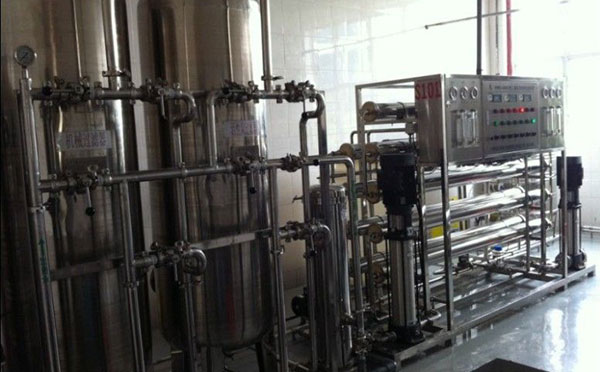 原水箱-原水增壓泵-石英砂過(guò)濾器-活性炭過(guò)濾器-軟水器(可選)-保安過(guò)濾器-反滲透主機(jī)-純水箱-純水輸送泵