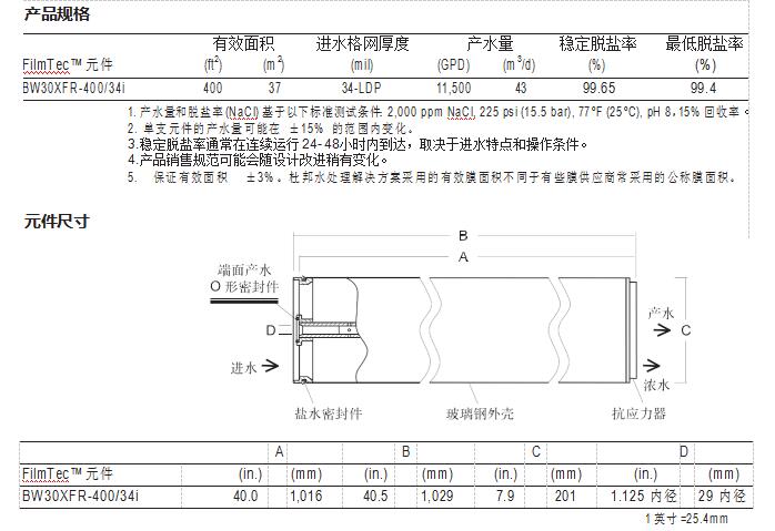 FilmTec™ BW30XFR-400/34i 元件經(jīng)證明,具有優(yōu)異的性能:
